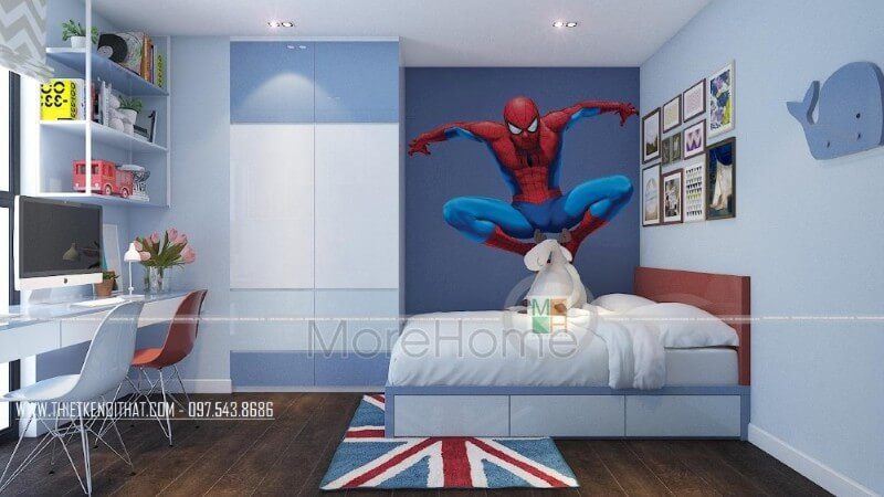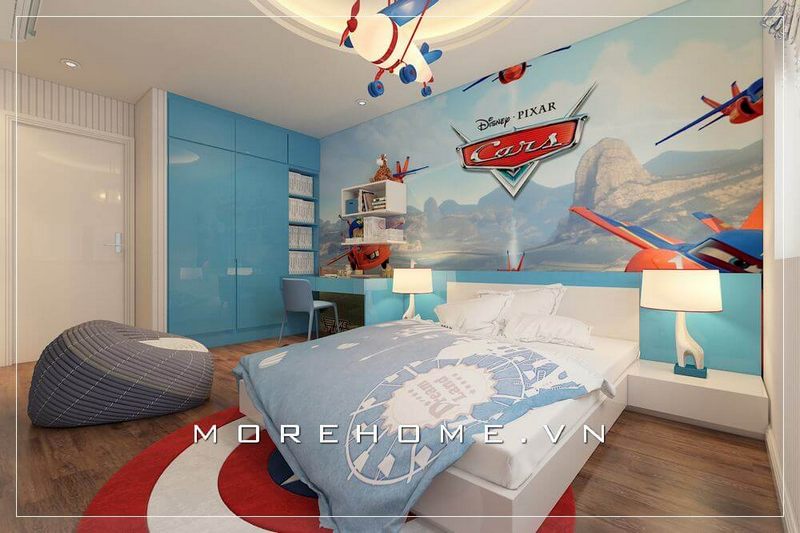 Trang trí nội thất phòng ngủ bé trai với giường ngủ gỗ công nghiệp