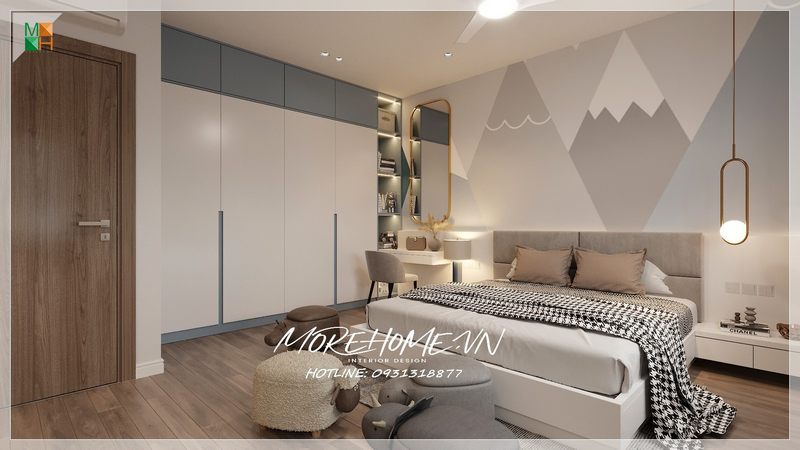 Mẫu giường ngủ bọc vải hiện đại với tông màu ghi xám cho phòng ngủ cho bé trong không gian nhà phốchung cư