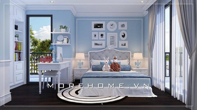Thiết kế giường ngủ đẹp cho phòng ngủ của bé trong không gian biệt thự cao cấp phong cách tân cổ điển sang trọng, ấn tượng