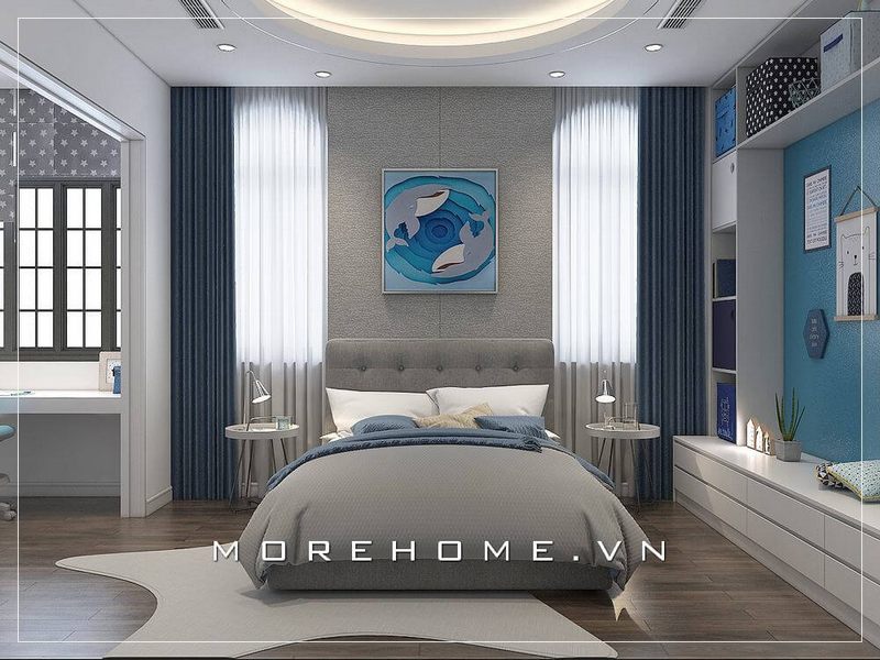 Mẫu giường ngủ đẹp cho phòng bé trai - mạnh mẽ nam tính với gam màu xanh dương trầm ấm