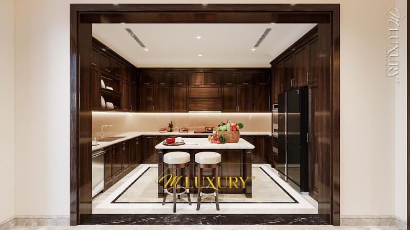 Việt Hưng Long Biên Hà Nội được trang trí nội thất phòng bếp đảo nhà biệt thự.