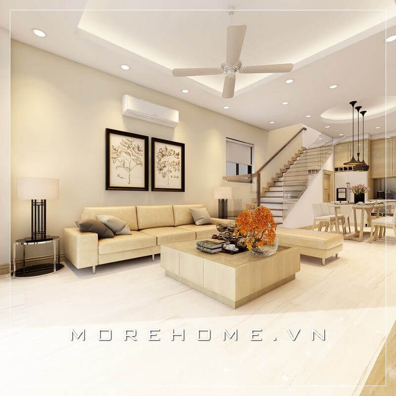 Để dễ dàng trong việc sinh hoạt của các thành viên trong gia đình, nên thiết kế phòng khách mở rộng và kết nối với phòng bếp.
